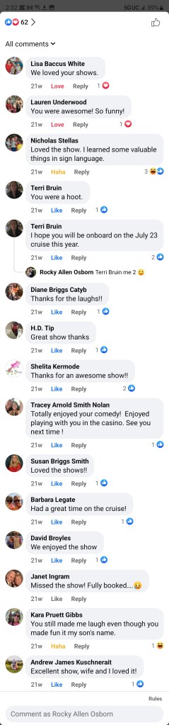 Currently, Rocky is a CruiseShip Comedic Headliner. When he’s not out making people laugh on the high seas, he is performing at local various clubs around Southern California.